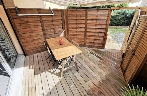 Accommodation: Two-room cabin apartment with loggia, terrace and air conditioning On the ground floor - Close to the beach - For 4 people - A bedroom with a double bed - A cabin with 70 cm pull-out beds - Equipment: TV, ceramic hob, combined microwave, fridge-freezer, dishwasher, washing machine, planxa - Total surface area of 32 m² with a loggia of 5 m² and a terrace of 8.50 m² - South-East exposure - Beach 150 m and center 400 m - Private parking n°603 closed with barrier - Pets not accepted