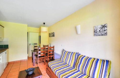 Details: Playground for children : With slide, spring game. Pets allowed : Animals are accepted for an additional fee. Find out on the spot. Maintenance kit : Maintenance kit included (1 sponge, 1 washbasin, 1 vial of multi-purpose product, 1 vial of hand dishwashing liquid product, 1 dishwasher tablet and 1 towel : can vary according to residences) Final cleaning : Extra charge. Must be completed at the end of the stay, either by the customer or by paying the service at the pre-check-in. Number of stars bowling Ping Pong : Table tennis tables accessible within the residence Swimming pool : Outdoor heated with terrace/solarium in free access. Open from 01/04 to 30/09. Near airport : Toulouse-Blagnac Airport #TLS (174.3 km) Tourist tax (surcharge) : To be paid from your customer area: https://my-compte.maeva.com. Its amount varies according to the locality. Free for children under 18. kettle Coffee maker Deposit (in euros) : 500 Heating Cooked Smoke detector Floor Toaster Dishwasher Final Cleaning : Extra charge. Must be completed at the end of the stay, either by the customer or by paying for the service at the pre-check-in or on arrival Microwave oven Number of bedrooms : 1 Number of pieces : 2 Number of toilets : 1 Number of bathroom : 1 Car park : Outside Cooking plate Fridge Dining Room - Seating Capacity : 5 Surface (m²) : 26 Television Terrace Dishes and cutlery
