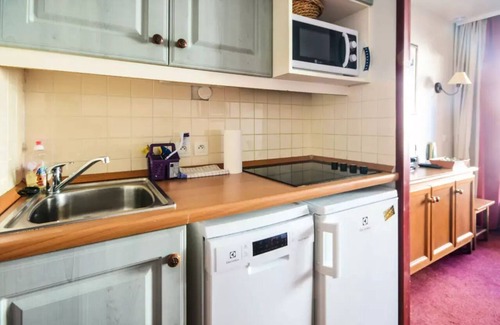 Equipment: Characteristics of the holiday rental :Apartment 2 rooms 4 people.Located on the 6th floor of the residence (accessible by lift).Terrace facing south.Fully equipped kitchen : dishwasher, microwave, coffee maker (classic), raclette machine, toaster, kettle, refrigerator, cooking table, dishes and cutlery.Equipment:TV, Wifi access, hairdryer, safe, ski locker, board games, playing cards, table and iron.
