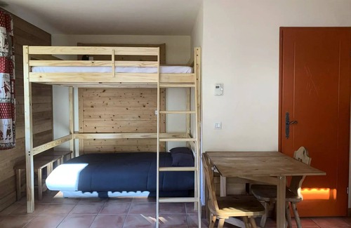 Accommodation: PRA-LOUP 1500, N° Plan to N° 78:Studio for 2/4 people, 1st floor, about 28m2 ; West exposure with balcony.* Living room with sofa bed and mezzanine bed + clac click, HD TV, dining area, balcony access;* Kitchen corner: ceramic hob, oven/microwave combi, refrigerator/freezer, dishwasher, coffee maker, storage cabinets;* 1 bathroom with bath and toilet.COMMENTS : Very nice and spacious studio, well equipped, ideal for a stay in the mountains, quiet and close to nature. Individual ski box.NON-FUMER APPARATUS