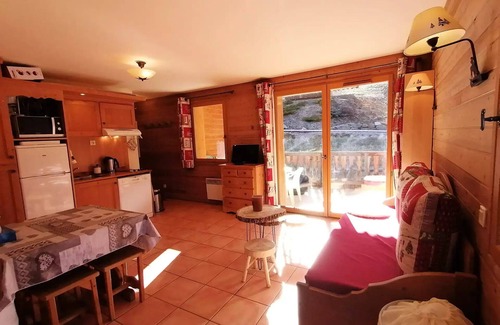 Accommodation: PRA-LOUP 1500, N° Plan towards N° 78: Studio for 2/4 people, 1st floor, approximately 28m²; West exposure with balcony. * Living room with trundle sofa bed and double folding bed, HD TV, beautiful wooden furniture, balcony access; * Kitchen area: ceramic hob, combi oven/microwave, fridge/freezer, dishwasher, filter coffee maker, Nespresso coffee maker, kettle, toaster, storage cupboards; * 1 bathroom with bath and WC. COMMENTS: Very pleasant and spacious studio, well equipped, ideal for a pleasant stay in the mountains, quiet and close to nature. Individual ski box. NON SMOKING APARTMENT