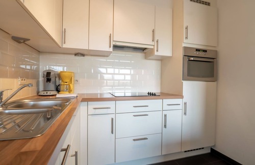 "Appartement 402", 2-room apartment 50 m2 on 4th floor. Comfortable furnishings: open living/sleeping room with 1 double sofabed, digital TV, flat screen, hi-fi system, DVD and gas heating. Exit to the balcony. 1 double bedroom with 1 double bed (1 x 160 cm, length 200 cm), TV. Open kitchen (dishwasher, 4 ceramic glass hob hotplates, electric coffee machine, combination microwave). Shower, sep. WC. Balcony furniture. Facilities: children's high chair, baby cot, hair dryer. Internet (WiFi, free). Please note: non-smoking house.