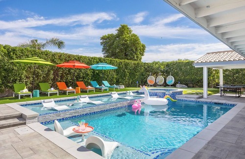 Resort Living! Outdoor Kitchen | Fire Pit | 4BR/4BA | 🌴 has 4 Bedrooms , 4 Bathrooms, and max occupancy of 10 people. The minimum rental for this property is 1 nights, but this can change depending on the season you plan on staying. Previous guests have given good rated it, and VRBO labeled it a top-rated House because of the excellent services rendered by the owner or manager of this House, and has consistently provided great experiences for their guests. Most families or guests that use it recommend it to their friends and some of them are repeat guests. House has a friendly neighborhood, and the Palm Springs has interesting places to visit. If you want to learn more about the House in Palm Springs, such as places to visit and things to do nearby, you can check below to learn more.