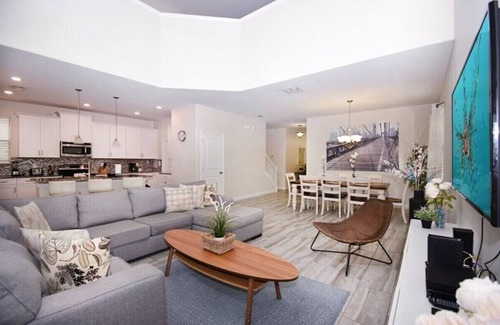 Solterra Oasis Villa is a modern, spacious retreat designed for families and groups—comfortably sleeping up to 16 guests. Located within the exclusive gated Solterra Resort, this beautifully appointed home offers everything you need for a magical stay in Central Florida.