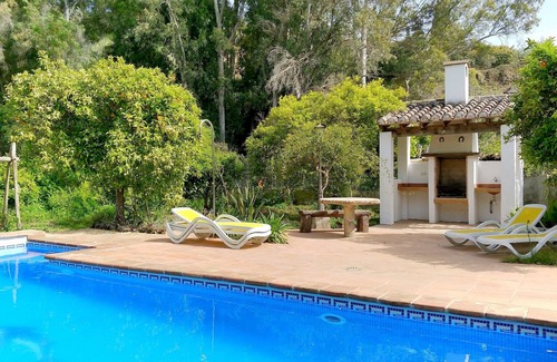 Charming house with fireplaces, pool, barbecue, and air conditioning fully equipped which occupies an old water mill, surrounded by orchards, and groves, accessible by paved roads and close to Alhaurin el Grande (1.5 km), Fuengirola with its beaches ( 16 km), Málaga (30 km), Airport (25 km) and Marbella (30 km).