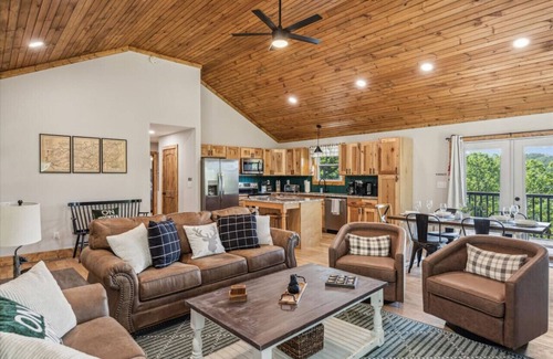 You are invited to rest, relax, and enjoy Vista View Retreat. 2024-built, First time offered as a short term rental in a one-level private mountain home on a dead-end road. Your personal comfort is priority: Our mountain retreat is perfect for a family of 6 (4 adults 2 children) or two couples. Located only minutes from Dollywood, The Parkway, and Pigeon Forge attractions & an easy drive via The Spur to Gatlinburg attractions.
