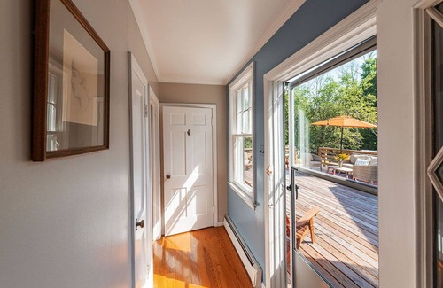 Watch the changing light from new solid wood deck overlooking the pond in perfect ecological balance. Dive from ancient flat stones into 10 foot water or just sunbathe. Explore, walk and meditate on large glacial rocks off trails in woods behind house.