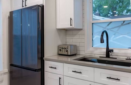 We remodeled this space over the top! The home is packed with technology (Bluetooth shower vent/light/speaker, LED light built into medicine cabinet vanity in bath, and all high-end appliances. And more!