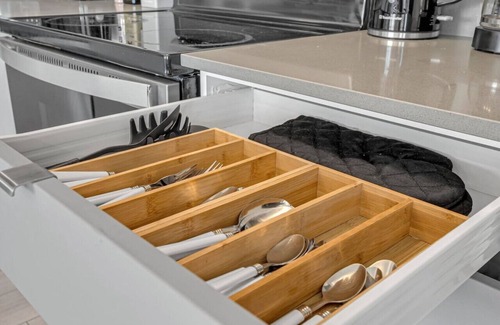 This spacious townhome is 3 stories and is complete with 3 bedrooms, 1.5 bathrooms, and a dedicated workspace! This well-equipped modern home has everything you need and more for an incredible getaway.