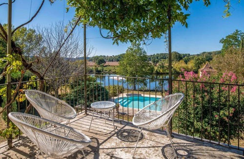 The mesmerising setting is how you may imagine your perfect Dordogne holiday. Listen to the church bells ring as you relax on your charming shaded terrace with magnificent river views. Wander down the stone steps to the glorious gardens which extend all the way down to the river bank, dip into the inviting swimming pool and admire the historic Pigeonnier which adds to the romantic ambience of this enchanting home.