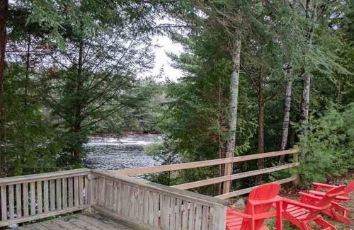 When thinking of Ontario Cottage Rentals many things come to mind, swimming, campfires, paddling in canoes & kayaks, fishing off the dock and BBQing with friends and family. At River Edge, you can do all that while also enjoying the spectacular view of the rapids and relaxing in the hot tub or sauna, right over the river edge!