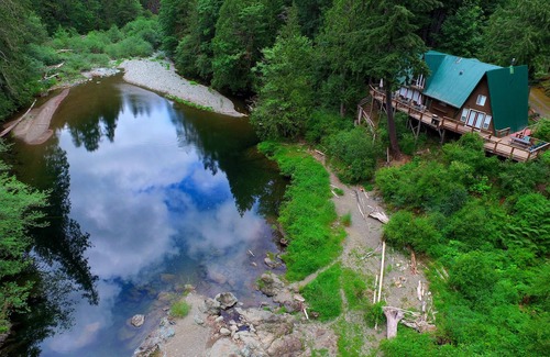 Riversong is a beautiful 3,500 + sq. ft. retreat centre in the Cowichan Valley on the Koksilah River, and which is surrounded by mature forest. The river widens in front of Riversong, and provides a beautiful private swimming area and beach. The main lodge has a large living room area with soaring ceilings and a gas fire, and a large dining area which comfortably seats twelve to sixteen people. The deck outside, which overlooks the river and forest, seats up to twenty-four, and also has additional comfortable furniture for lounging, reading, and napping. Inside, there are board games and puzzles, and a large selection of DVDs plus Netflix & Prime for your use. There are three double bedrooms, two loft bedrooms, plus a two-bedded yoga studio/bedroom There are three areas, allowing for separation of space: a one-bedroomed self-contained Cottage, the Lodge, and the Chalet. The space is very adaptable, so Riversong can hold eight people and feel the perfect size, or expand to hold 17 comfortably. There are some great camping sites, if you want to spend a night by the river, or in the trees. The beds are comfortable single beds, but some can be joined together to make up king beds. There are also two sofa beds and high quality airbeds for maximum flexibility. There is a large very well-stocked kitchen and a BBQ on the large sunny deck, which faces west towards a provincial park and overlooks the river. The easily accessed private beach area and large swimming hole has grassy verges, a beach area, and large river rocks for lounging. The water is gentle during the summer months, and becomes fuller and very interesting in the other seasons! Bald eagles, otters and trout are just some of the wildlife you're likely to see. In summer, there are inflatables and kayaks for relaxing and play, and adirondack-style beach chairs and a hammock for comfortable lounging. The house is on nearly 11 acres of forest and green space. Close by are the Shawnigan Lake and Koksilah Provincial Parks, Shawnigan Lake Village, the Kinsol Trestle, and miles of trails for walking, hiking and biking, including the Trans-Canada Trail. Only 45 minutes from downtown Victoria, and less than 30 minutes from Duncan and Cowichan Bay, Riversong is perfectly placed for day-trips for sight-seeing or shopping. Wineries and golf courses are all just a short drive away. This is a perfect place for a small or large family holiday or reunion, a 'friends' weekend', a meditation/yoga retreat, workshops, a small custom wedding, or a company work retreat. There is high speed Internet and a landline phone (no cell coverage). Come to Riversong and let your heart sing.
