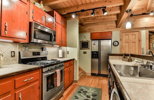 Fully equipped kitchen: Refrigerator, stove, oven, microwave, dishwasher, toaster, coffee maker, dishes, glassware, utensils, cutlery, pots, and pans. Linens for each bed, 2-bath towels, 1-hand towel, 1-washcloth per person listed on guest list, dresser or closet for clothing storage, central heat & air, washer/dryer, vacuum and/or broom and dustpan, mop, internet, and propane gas grill. In addition, we provide a complimentary start-up supply of Toilet Tissue (1 roll per bathroom), 1- roll paper towels, 4- kitchen garbage bags, dishwasher detergent, dishwashing liquid and laundry detergent for at least 2 loads. Many of our cabins include more than this basic list of inventory items. The only items you'll need to bring will be food, beverages, and condiments.