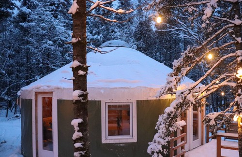 River/Wooden Hottub Yurt in Nature | Ski Chalet in Sainte-Rose-du-Nord