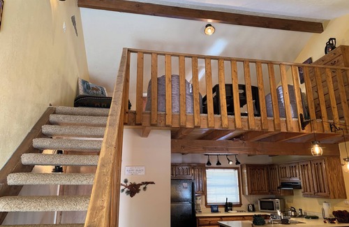 This efficiency unit is connected to Riverbend 7A and can be rented together or separate. The home sits across the river with beautiful views of the mountain. The efficiency comes with a full bathroom and kitchenette and a queen-size bed for two with a twin pull-out. Snuggle up to the fire in the morning or night and enjoy the views out the front window or enjoy the latest posts from Reservations Unlimited Facebook page as this unit comes with complimentary wifi. Not into Facebook or enjoying the views? Relax by the fire and watch a show on the flatscreen TV before your next Red River adventure begins. The home does come with a kitchenette in case you need to whip up a quick meal.