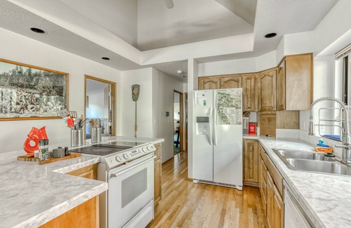 In the evenings, unwind with a soothing soak in the primary suite's jetted bathtub and retire to two bedrooms - both of which have new mattresses and direct access to the outdoors. Central air conditioning and a private washer/dryer are provided as well.