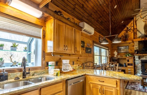 This peaceful riverside home, located in Newland, has direct access to the Linville River and is conveniently situated with High Country Adventures all around. A twenty-minute drive brings you to the entrance of the Linville Gorge Wilderness Area, home to the breathtaking Wiseman's View, also known as the Grand Canyon of North Carolina. Hop on the Blue Ridge Parkway, just under ten minutes from the cabin, for scenic overlooks and numerous hiking trails. Linville Caverns, Linville Falls, and the beautiful Linville Winery, offering outdoor seating and live music, are only a few minutes away. Guests of all ages will love Banks Creek Barn, six minutes down the road, with 80 acres of outdoor family fun, including a taproom and trout fishing ponds. Be in Banner Elk in 30 minutes for mountain biking, skiing, snow tubing, and ice skating at Sugar Mountain Resort or white water rafting, ATV rentals, and the Wilderness Run Alpine Coaster adventure park. Winter enthusiasts will find Jonas Ridge Snow Tubing Park only ten minutes away. Are you an APP Football fan? Kidd Brewer stadium is only 35-40 mins away.