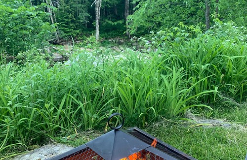 Outside: 7 person hot tub and beautiful riverside grounds with a propane grill and picnic table, fire pit - all overlooking the river