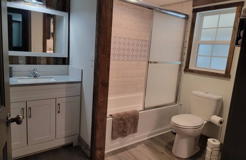 Relax on the banks of the French Broad River in this newly refurbished home. Sit in the hot tub and watch a movie or the game on the outdoor smart TV. Hook up to the large Bluetooth speaker and take a turn on the outdoor dance floor. Lounge in the hammock. Enjoy the view and the wildlife. Play a game of horseshoes. Gather around the large fire pit. Ride vintage bikes down the road to the public playground or go 2 miles to the Town of Marshall for shops and restaurants. Master bedroom features a Queen bed and a cozy reading chair. Two other bedrooms include twin beds. Couch in the living room sleeps very well as well as a love seat that would sleep a child very comfortably. The living room is also stocked with tons of movies for your viewing pleasure on the smart TV. Kitchen includes all new appliances; stove, microwave, dishwasher, refrigerator, and Kurig coffee maker. Included are a blender, pots, pans, dishes and utensils for preparing meals. Bathroom is newly redone with attached laundry room including washer and dryer free for your use. The house is located at the end of a quiet street. Nice private location. Conveniently Located 2 Miles from Marshall, 19 miles from Hot Springs and the beautiful Smokey Mountain National Forest. 11 miles from Mars Hill, and 20 miles to Asheville. Lots of lounging around the house cooking dinner on the grill or going to some of the many restaurants the area has to offer. Central to great hiking, fishing, and exploring.