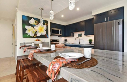 Look no further for the Maui vacation home of your dreams! Our newly renovated and spacious condo offers all you need to make lasting memories in comfort and style. The open floor plan has separate spaces for all occasions, from the sociability of the dining table and the bar in the kitchen, to the cozy and comfortable living room for down time after a long day at the beach or on adventures. The privacy needed when vacationing with family is also a plus at Royal Kahana 301, with distance between the two bedrooms and bathrooms, as they are located on separate sides of the condo.