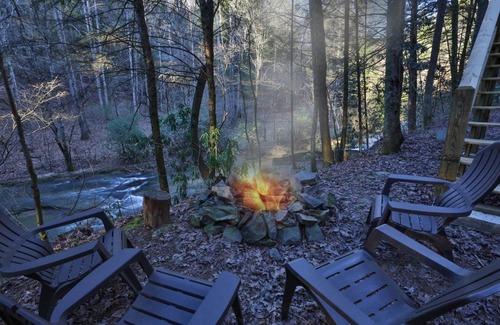 New to Blue Sky Cabin Rentals as of March 2019. Roaring Creek is a non-pet-friendly creekside property with all paved road access. Burrowed into the mountain overlooking MountaintownCreek you will find all the serene nature your heart desires. Bring your fishing poles and "A game" to fish our locally renowned trophy trout stream. While casting a line you can enjoy the firepit on the brink of thetributary that flows southward off the mountains that form the basin that defines the Cohutta Wilderness area. Don't stop there come to enjoy the plentiful decks this cabin has to offer, with outdoor dining for six and hot tub on our terrace level. Step up above to enjoy the breakfast area on the main level deck with the grilling area right on hand. The lucky couple to get the upper-level king bedroom will get to indulgein the private balcony with the joyful harmony of the living world. If the weather goes awry you can enjoy the terrace level game area to keep the family entertained with a fun competition.The atmosphere at Roaring Creek was designed for comfort, rejuvenation, and re-connection to the simpler things. We hope you enjoy our paradise!