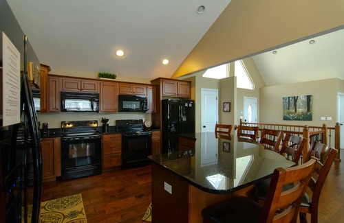 Rock of Ages is equipped with many conveniences for large groups including extra large kitchen with double appliances, spacious dining area, three living rooms, and multiple roomy decks.