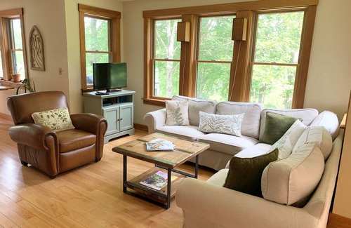 Come unplug at the Main House of Hill Spring Homestead. Central location only 10 minutes from Camden, 8 minutes from Rockport and Rockland. Full private use of the hand crafted main house will be yours. First floor has full bath with shower, laundry, and farmer's sink, as well as office with queen pull out couch. Upstairs are three bedrooms (2 queen rooms and 1 king room) and a full bath with clawfoot tub. Organic fruit trees, vegetable gardens, trees, and flowers will greet you out every window. Take in the bird songs while you enjoy morning coffee or evening drinks on the wrap around deck. Build a bonfire and enjoy the stars at the large fire pit. Breathe easily knowing the home and organic linens are cleaned with plastic free all natural products, and electricity comes from the solar grid. Meditate, journal, paint, or read in the sun filled cupola. Mountains, ocean, lakes, rivers, shopping, galleries, restaurants, and exceptional locally produced food all within a 10-20 minute drive. Take a day trip to Acadia National Park, Portland, or countless beautiful seaside towns along the Mid Coast. Let us know if you'd like to use our double kayak or canoe during your stay. Our family (including sweet natured Golden mix, cat, and friendly hens) shares the property in adjacent guest house. We are happy to provide recommendations and suggestions so you can enjoy Mid Coast like a local, and will be available should you need us, but we are often away from home at work so you will have plenty of privacy. Welcome to a true get away!