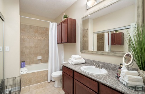 This 1200sqft BEAUTY is centrally located in a Gated Resort style Complex located on the 1st Floor, TWO Luxurious King Beds in the Middle of Houston! Close to Everything, You are in the LOOP! Literally
