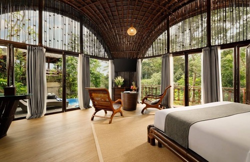 Escape to a serene paradise where romance meets nature at this 1-bedroom jungle-view villa. Designed with love and intimacy in mind, the villa features a stunning bamboo interior that blends seamlessly with its lush surroundings, offering a warm and tranquil ambiance.