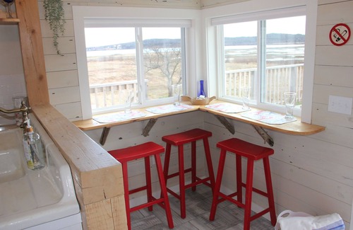 Sunrise is a small space, but can comfortably fit up to 5 + guests. Two bedrooms are shared on upper level of the cottage. The bedrooms overlook the bay and ever changing tides through saltwater marsh. The king bedroom has their own personal upper level deck to enjoy that breath taking view that words or photos can not convey. On a clear sunny day you can see Grand Manon Island 8 nautical miles away as well as spectacular views of the Bay of Fundy, Campobello Island & Quoddy Head State Park.