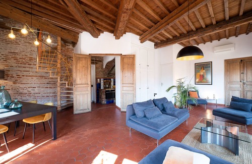 This duplex is located on the 3rd floor of a former convent, accessible via a grand staircase that’s over 400 years old. Wide, bright, and adorned with magnificent sculpted pillars—a true architectural masterpiece—it adds an authentic touch to your experience. A perfect prelude before arriving at your cozy retreat!