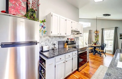 This is a newly renovated home with a full kitchen, all new appliances, new washer & dryer, oversized furnished deck with gas firepit, high speed internet, beautiful mountain views, private pond with floating dock and fountain, and a peaceful and quiet walking trail.