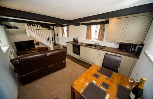 Plough Cottage has an entrance porch leading into an attractive, open plan lounge/dining room equipped with a modern fitted kitchen. The kitchen is well equipped with a cooker, fridge and microwave, the lounge has a Smart 40in Freeview HD TV and dvd player.