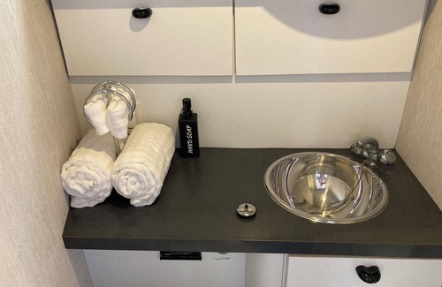 There are two small cabins aboard, and one bathroom. There is less than 200 square-foot total space and it is advised to bring as little luggage as possible as there is no storage onboard.