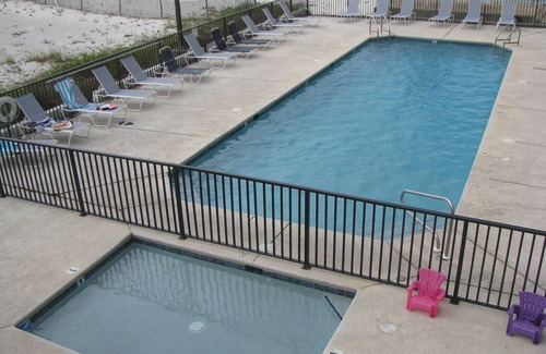 The pool area is beachfront and has both a pool and a kiddie pool. There are 2 covered areas with picnic tables near the pools for times you wish to enjoy the sounds and sights of the beach without exposure to the sun. Charcoal grills are also available in this area.