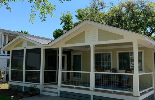 We’ve completed a full exterior renovation with new porches, Azec decking, roof and paint! There is seating on both the screened and open sides of the porch, as well as the backyard.