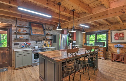 With towering trees, plenty of outdoor attractions, and a great location just 34 miles from Atlanta, this Dallas vacation rental is a great choice for multi-interest families. The 5-bedroom, 3-bathroom cabin offers a fully equipped kitchen, 3 Smart TVs, beautiful rustic decor, and plenty of board games for family game nights around the dinner table. Take in the beauty at High Shoals Falls, enjoy some retail therapy at The Avenue at West Cobb, or kick back with a brew on the deck!