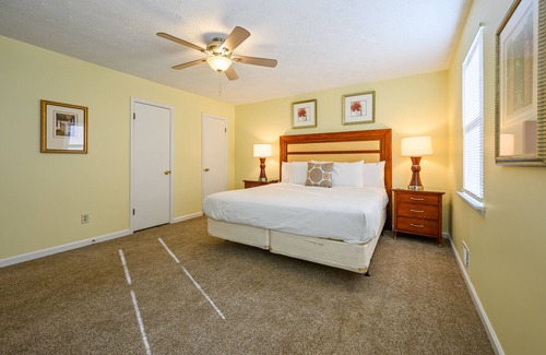 Inside, you´ll find a welcoming living room, a fully stocked kitchen, plus a dining area that comfortably accommodates six guests. The master bedroom has a king bed, and a private bathroom fitted with a sink and walk-in shower. Three additional bedrooms each have a full-size mattress. Each bedroom is equipped with ceiling fans, Smart TVs, Wi-Fi, and hotel-quality linens. The second bathroom has a sink and tub/shower combo. The kitchen is fully equipped with appliances and cooking essentials. We set out a welcome tray with snacks and pods for the Keurig K Cups coffee maker. There is a full-sized washer and dryer inside the home. This is a non-smoking property, not suitable for events. Children and pets are welcome, pet fees apply.