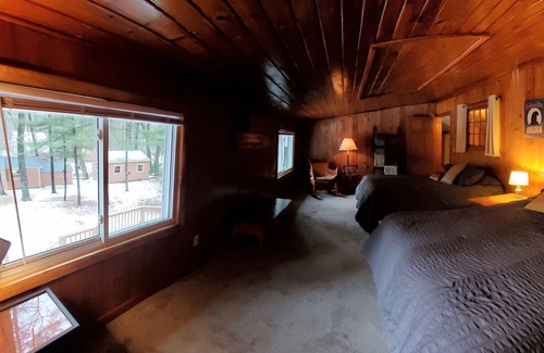 This Rustic cottage will steal your heart. Newly remodeled with all new amenities. Grab the marshmallows and watch the fire flies dance in the moonlight. Just steps from Taylor Lake where you can launch your boat for a cruise on the Chain. We are not on the lake but the boat landing is just a few hundred yards away. The large deck and huge wooded backyard retreat is great for everyone to gather around the fire pit and relax amongst the tall pines in lake country.