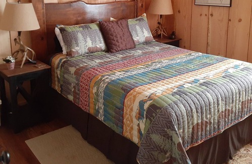 Welcome to Three Pines, a cozy rustic river cabin, newly constructed and completed in April 2022. It has all the charm of an old cabin and the convenience of a new one. In addition, we have over 300 ft.of private river frontage for your enjoyment. Our cabin is conveniently located and easily accessible. Beautiful views, walking and hiking trails, clear mountain lakes and state parks are minutes away. Enjoy the cool breezes and river views from our wrap around porch and just a few steps down to the private barbecue and firepit.