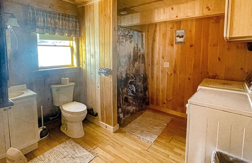 This cabin-like home brings rustic back with a wooden interior and exposed wood beams throughout! Enjoy an entertaining evening at home watching your favorite shows in the living room on the cable and streaming-equipped TV. The cozy sofas also provide guests with a great spot to take naps and get lost in their favorite novels. The fully-equipped kitchen will make cooking a breeze with all of its appliances and cookware (there is no dishwasher). Don't hesitate to put on the chef's apron and surprise your guests with their favorite recipes.