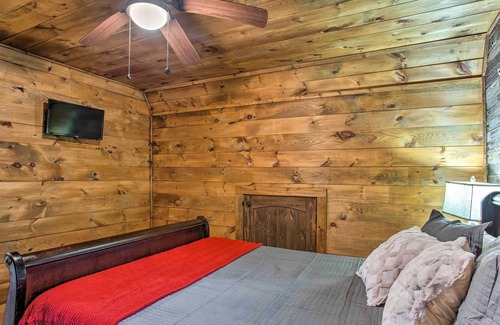 Find your bliss in the peaceful setting of this cozy 1-bedroom, 1-bath Gordonville vacation rental. This 2-story cabin — with a well-stocked kitchenette, a shared fire pit, and additional vacation rentals on-site for large groups — will be an ideal launching point for lakeside escapades. Trailblaze through Shady Park, venture along the Cross Timbers hiking trail, hit the waters of Lake Texoma with Captain Marty's Fishing Guides, or try your luck at Megastar Casino. Exploration awaits!