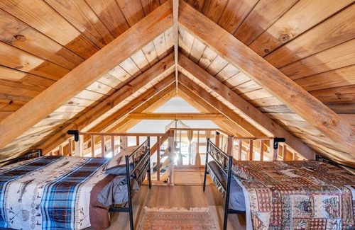 Master has a queen size bed and the loft has 4 twin beds (but more like single (imo)