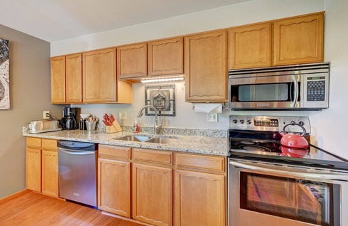 -Fully stocked kitchen with new sink, oven/electric stove, refrigerator, dishwasher, microwave. Pantry with staples, tea pot, coffee, coffee maker, baking sheets, pots & pans, dishes, blender, utensils and more!