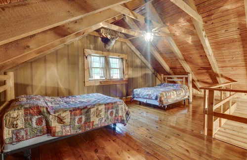 Your tranquil escape awaits at this 1-bedroom, 1-bathroom, plus loft vacation rental in Wellston, Ohio! Enjoy a romantic evening by the crackling fire pit as you take in serene pond views. For more excitement, play a match of pool and foosball in the community game room, or ride your ATV around sprawling on-site trails. Don't forget to explore Lake Alma State Park and Ash Cave as well! Return to the cabin and snuggle up with your pet by the cozy gas fireplace.
