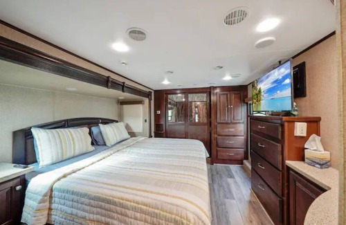 Discover Glamping in a perfect blend of comfort & adventure a stunning waterfront RV. With picturesque water views right outside your window, you’ll wake up to soothing sounds of nature.Step inside to experience modern luxury with updated amenities for a delightful stay.