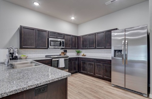*Kitchen is stocked with trash bags, sponges, soap, cookware, bakeware, dishes, glasses, utensils, and standard appliances + (air fryer and crockpot!)
