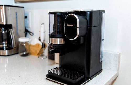 * Complete coffee bar with fresh grinder, frother, and every brewing method imaginable, from pour-over to pods; insulated cups