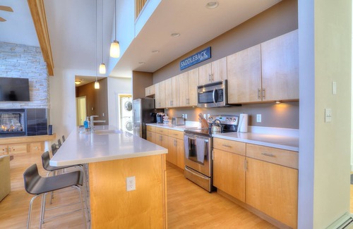 Inside, Magalloway Loop Home 49 is warm and inviting, with open living spaces perfect for family gatherings or relaxing after a day outdoors. Large windows throughout the home frame beautiful views of the surrounding mountain landscape, bringing the beauty of Saddleback inside. The fully equipped kitchen, cozy seating areas, and ample sleeping arrangements make this home a comfortable retreat for groups of all sizes. After a day on the slopes, you can unwind with the breathtaking scenery right outside your door.