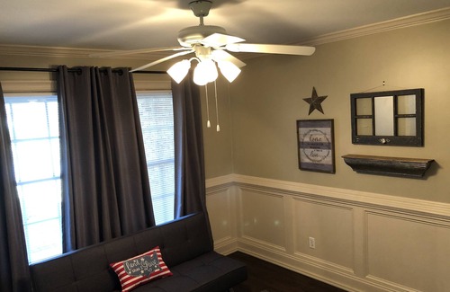 “The Gathering Place” is the perfect place for your family to gather to celebrate your soldier or special occasion. It is conveniently located close to Interstate 185 and north Columbus. Shopping (Peach Tree Mall and Columbus Park Crossing) and dining is very close by. We have 3 bedrooms, all have new Beautyrest Silver mattresses, and a separate room with a futon and TV. Bathrooms are updated and feature a walk in shower in master bath and jacuzzi tub in the hall bath. Living room has 50 inch TV with fast internet and cable TV. Kitchen is ready for you to cook a special meal and a charcoal grill is available on the back covered porch. Fenced in back yard for privacy. Minutes to St. Francis hospital, Chick-fil-a, and Starbucks. For your protection, we have bed bug protection encasements on all our mattresses to prevent bed bugs!
